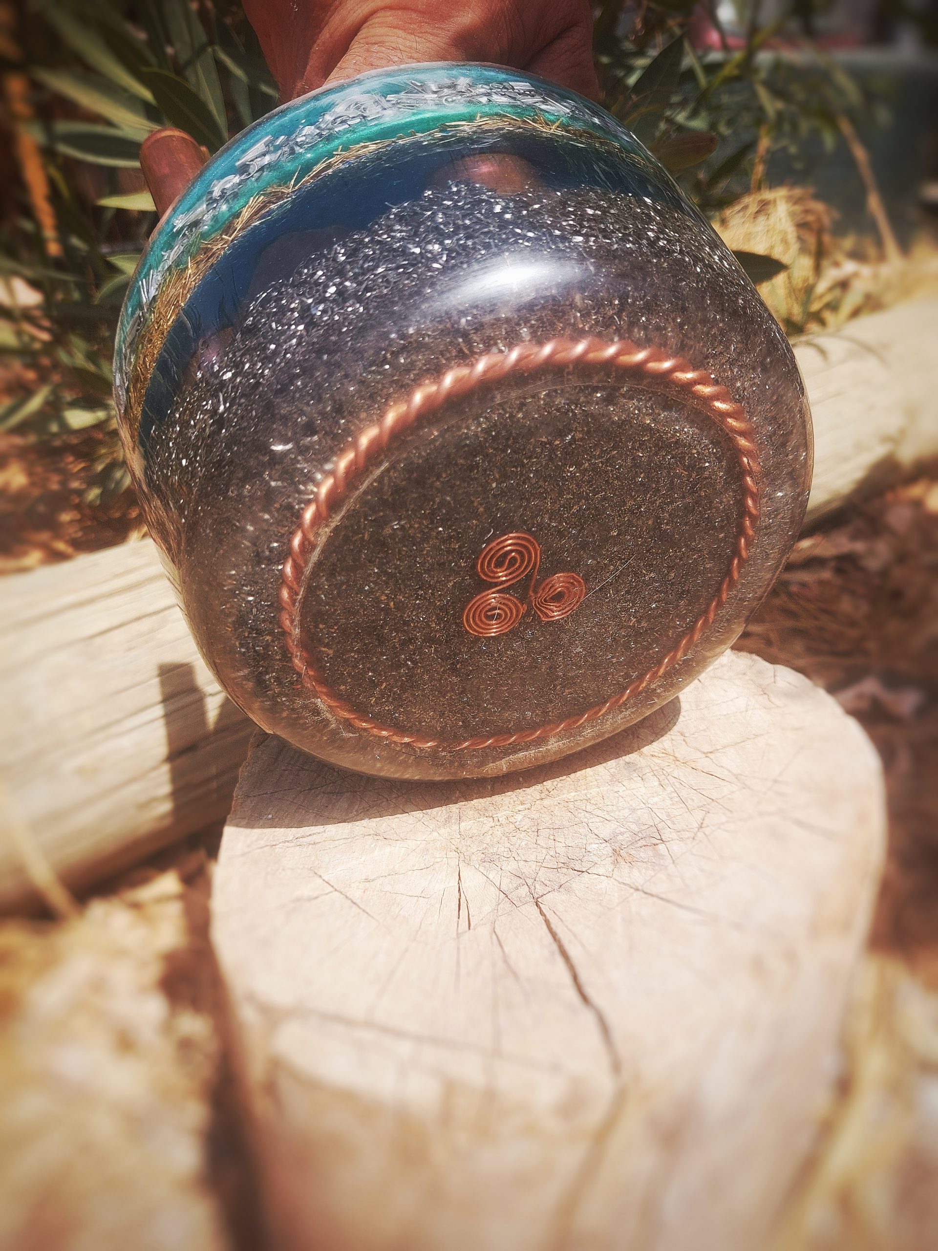 De epoxy oefent na uitharding extreme druk uit op deze energie, wat vervolgens zorgt voor het transmuteren (negatief naar positief) van de energie.