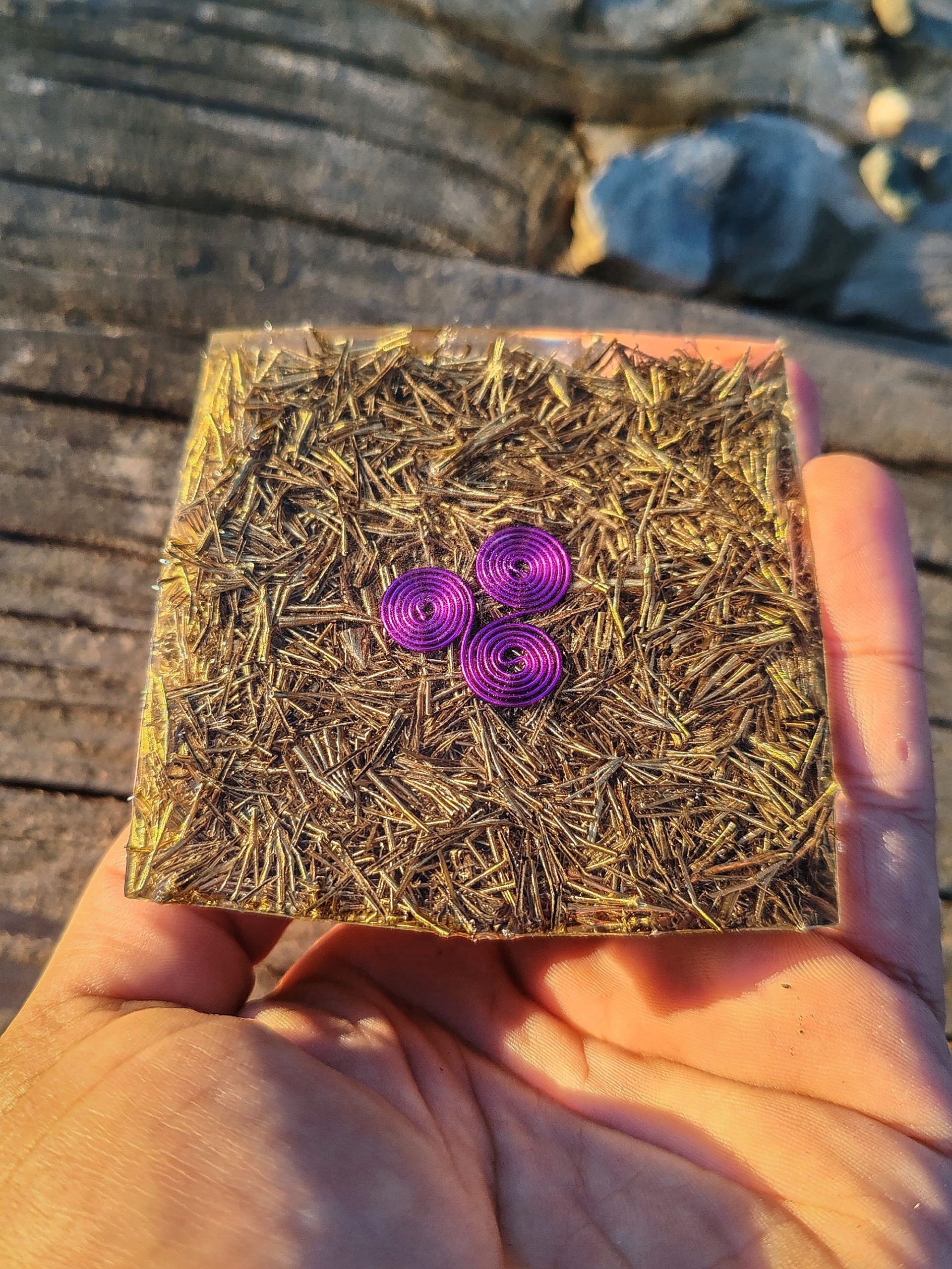 De metalen lagen (aluminium, messing en ijzer) versterken de werking van de kristallen en helpen energie te zuiveren en te harmoniseren, zoals 5G, Radiatie, Chemtrails en EMF.