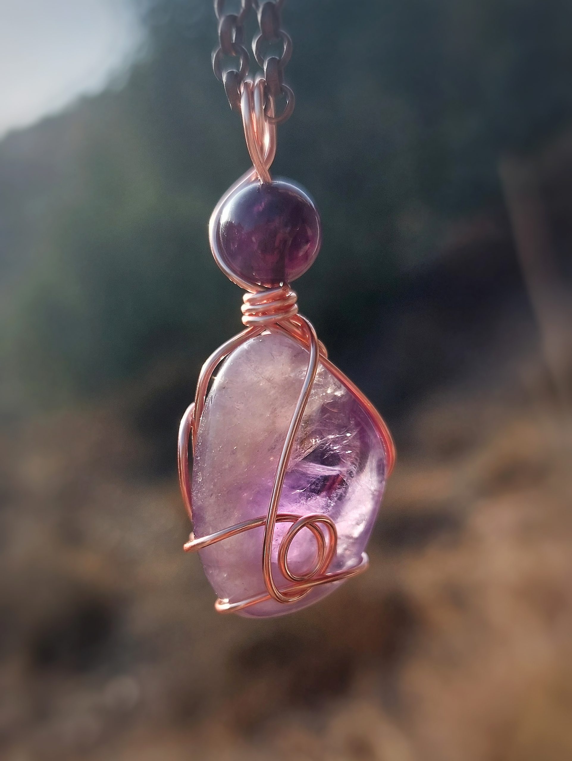 Amethist met koperdraad