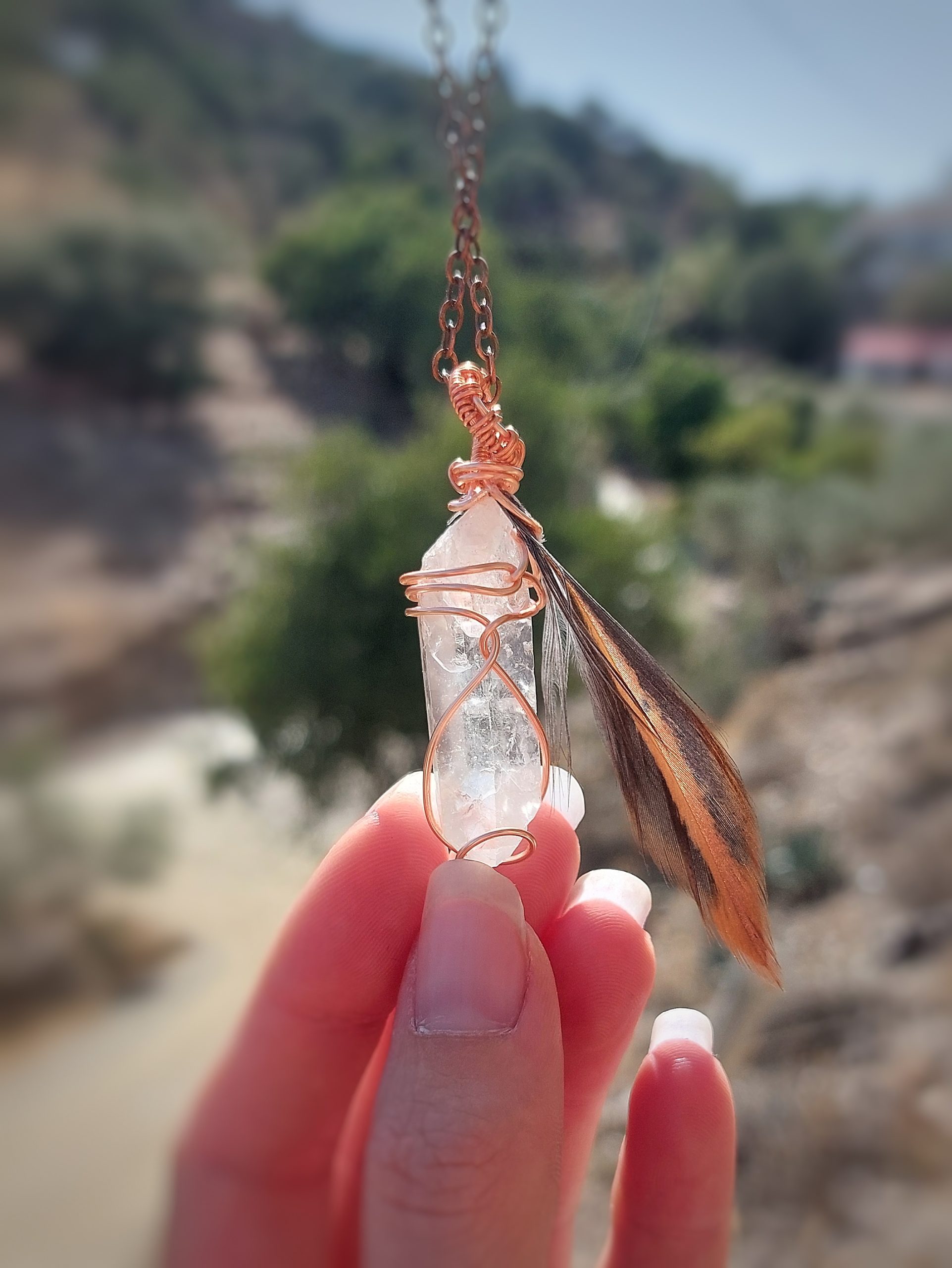 Bergkristal met Veer met koperdraad
