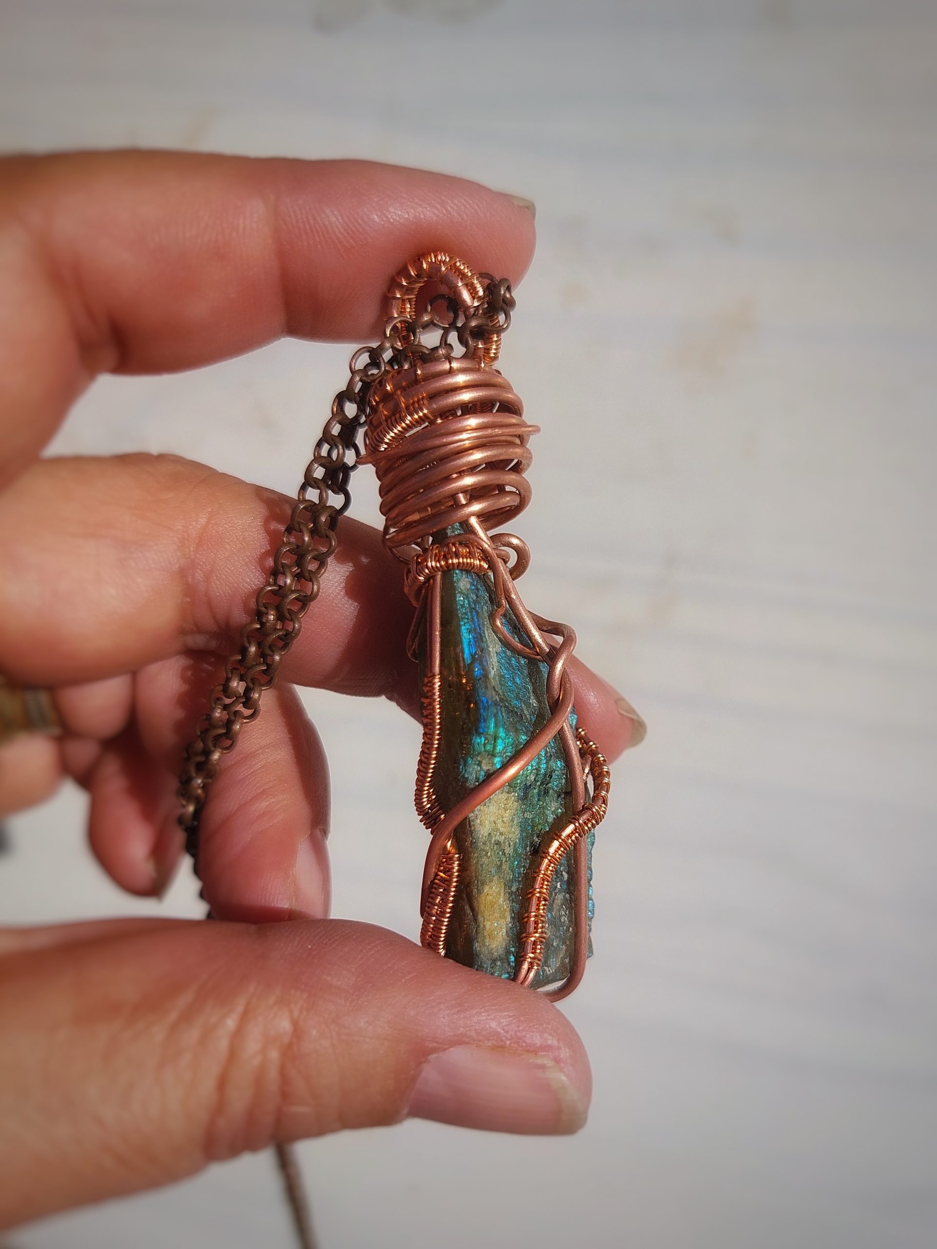 Labradoriet uit Madagaskar met koperdraad