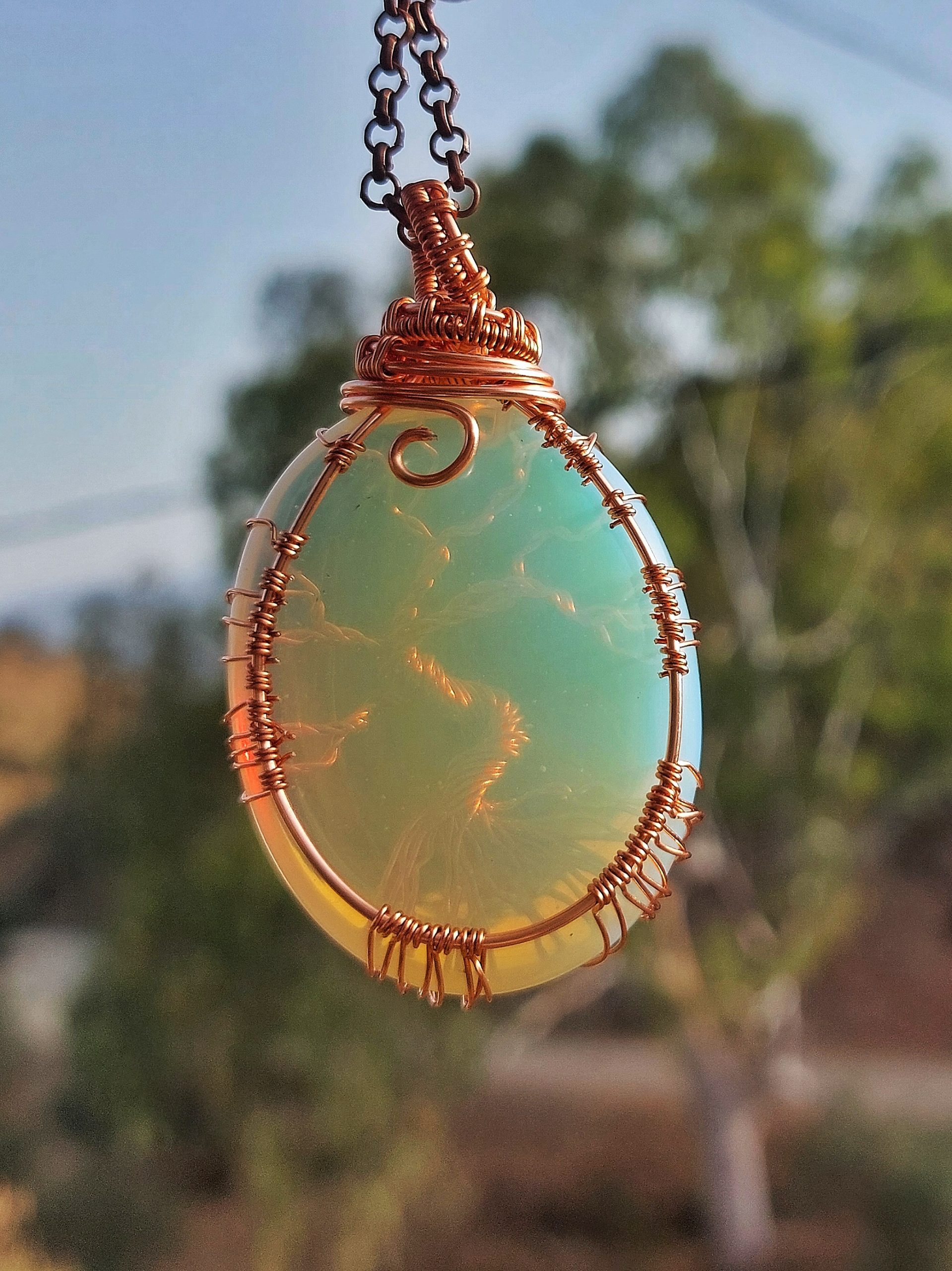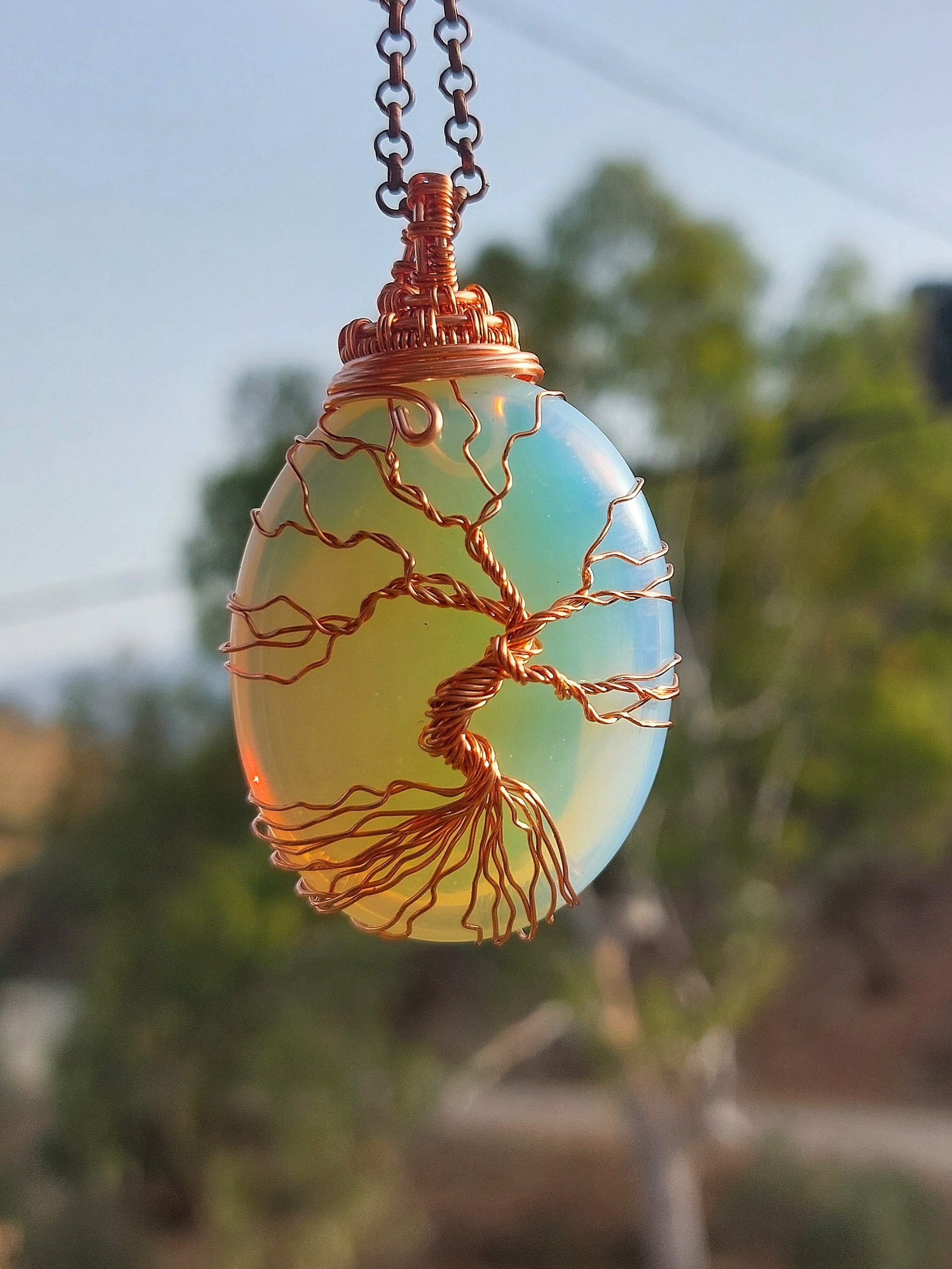 Opaal met Tree Of Life met koperdraad