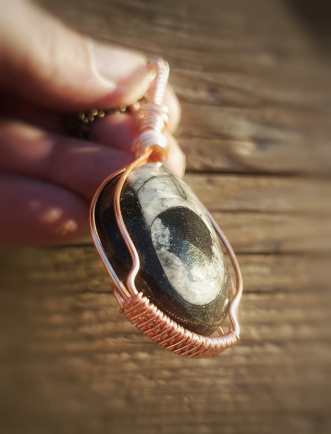 Orthoceras Fossiel met koperdraad
