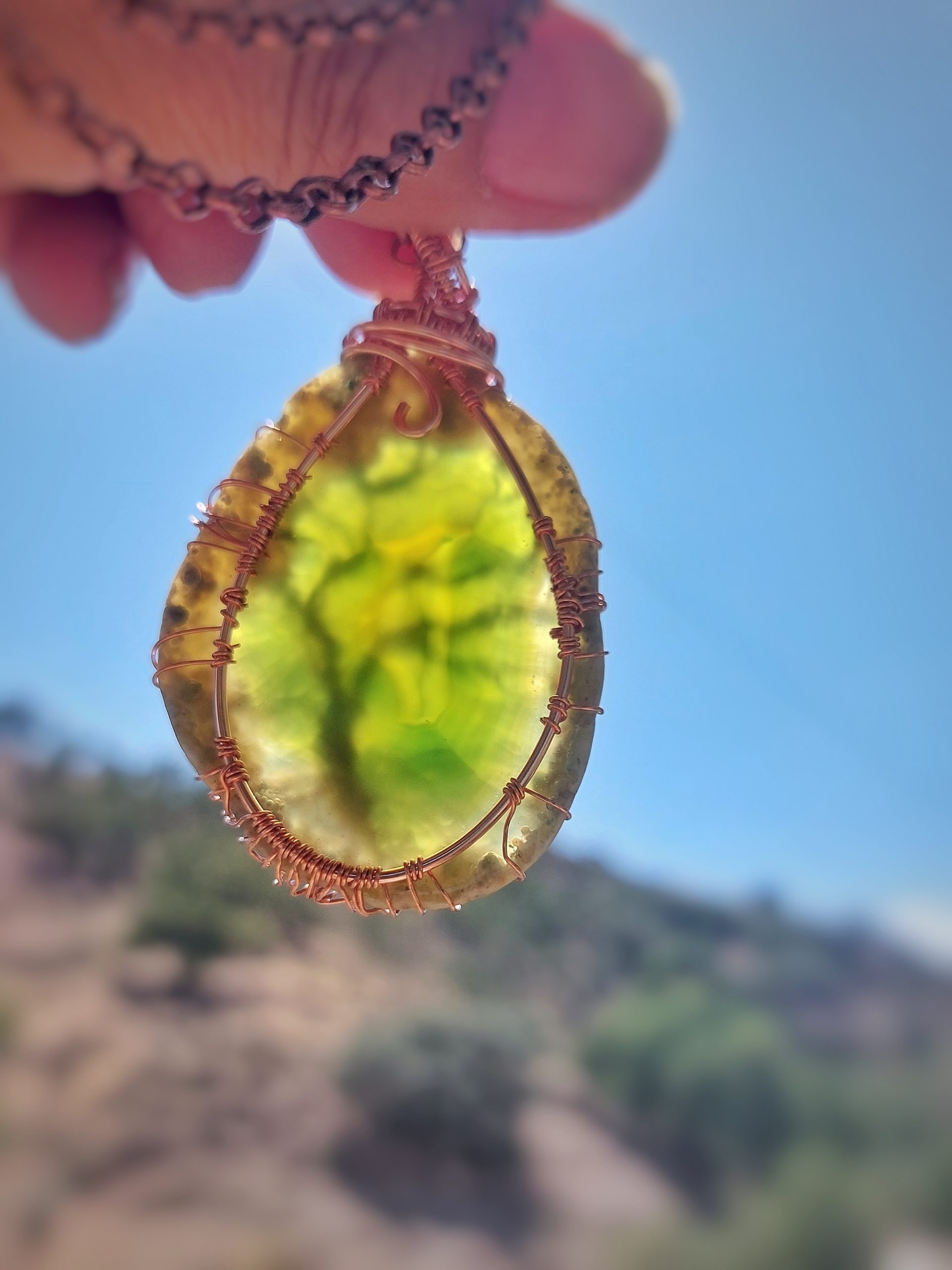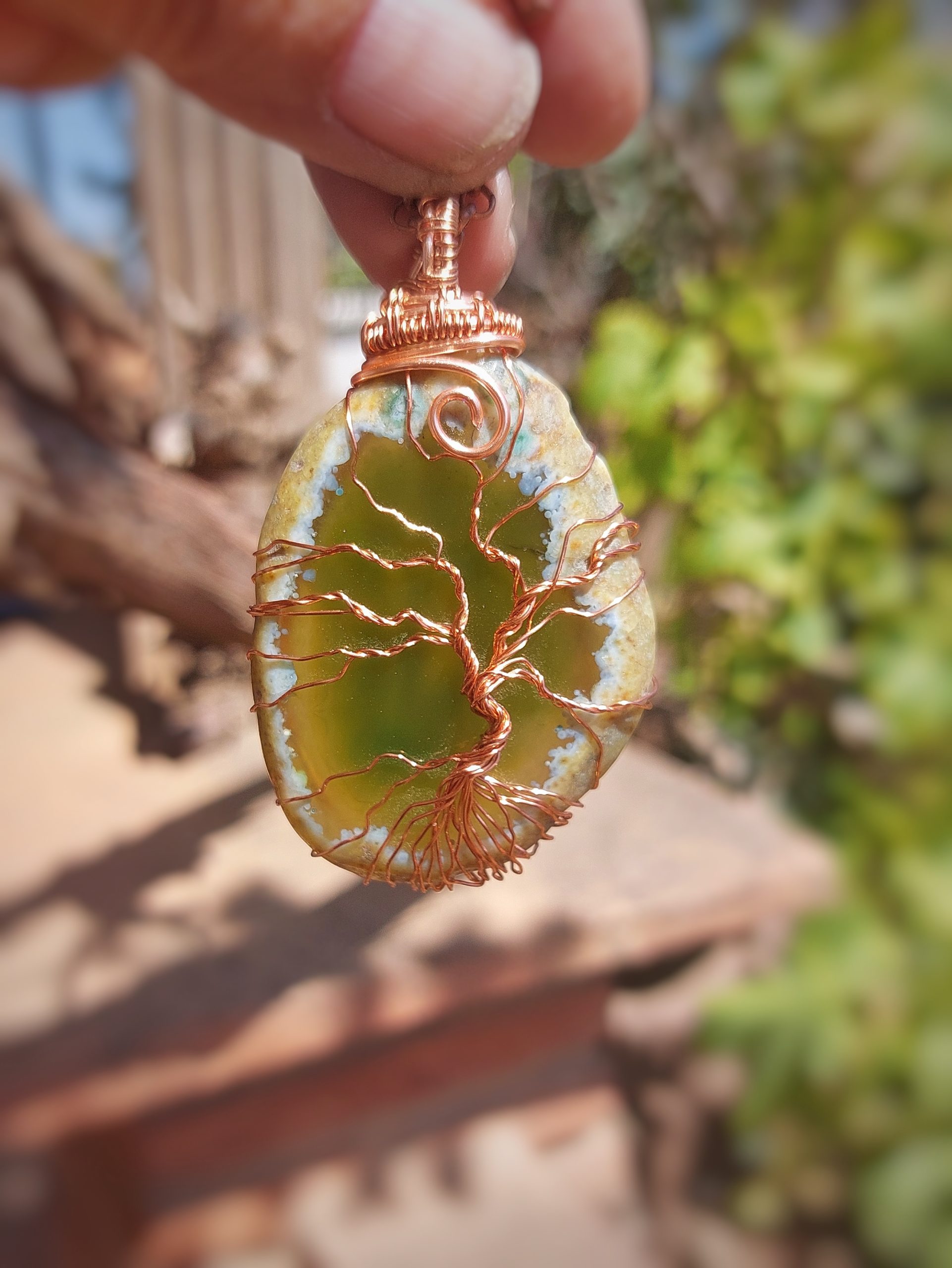 Tree Of Life groene Agaat met koperdraad